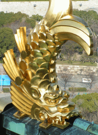 ... mit goldenen (drachenartigen) Fischen als Dachverzierung | |