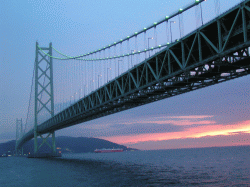 Die Akashi-Kaikyo-Brücke bei Kobe ist die längste (und teuerste) Hängebrücke der Welt. |