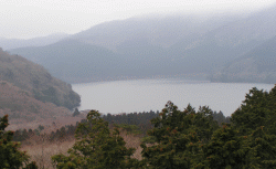 Der Ashi-See im Hakone-Nationalpark lag im Dunst ... | |